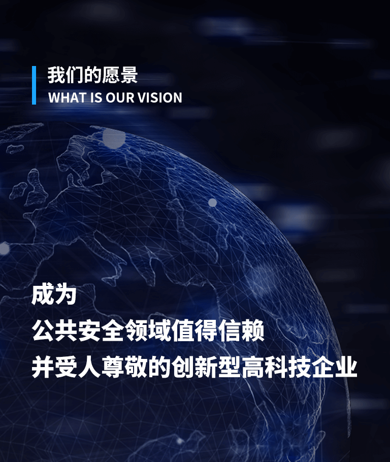 未來(lái),我們将持續踐行(xíng)“以科(kē)技(jì)創新、助國(guó)泰民(mín)安”的(de)神聖使命,為(wèi)公共安全事(shì)業(yè)和(hé)社會(huì♥)治理(lǐ)現(xiàn)代化(huà)貢獻力量!努力成為(wèi)公共安全領域值得(de)信賴并受人(rén)尊敬的(de)創新型高(gāo)科(kē)技(jì)企業(yè)!